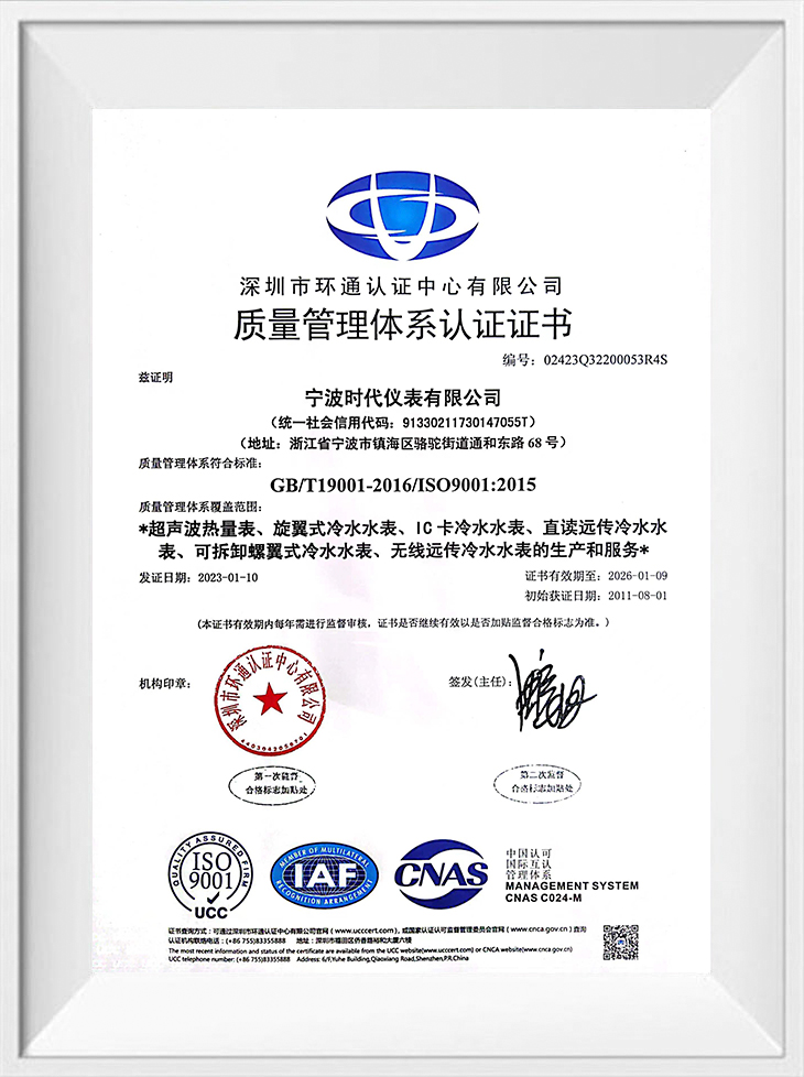 Ningbo Shidai Instrument Co., Ltd. är ett produktionsorienterat företag under AMICO-gruppen, specialiserad på att producera Amico Brand Intelligent Water Meters. Efter flera års utveckling har företaget blivit ett innovativt företag med försäljningen som överstiger 100 miljoner yuan. Företaget fokuserar på tekniska investeringar, grunden för hållbar utveckling och ekonomisk tillväxt. Baserat på utvecklingsriktningen för vattenmätare hemma och utomlands har företaget utvecklat en fjärröverföring utomhusläsning av datorfastighetshantering i kombination med meddelanden vattenmätare, speciella vattenmätare och värmemätare, vilket håller kvalitetsnivån för företagets produkter i SYNC med branschens avancerade nivå. Företaget strävar alltid efter målet om "kvalitet, noggrann tillverkning, kontinuerlig innovation, kundtillfredsställelse", implementerar fullt ut affärspolitiken för att vinna efter kvalitet och har formulerat en komplett uppsättning strikta kontrollprocesser i olika länkar som råmaterialupphandling, produktdesign, delar bearbetning, prestandatestning och produktförpackning.